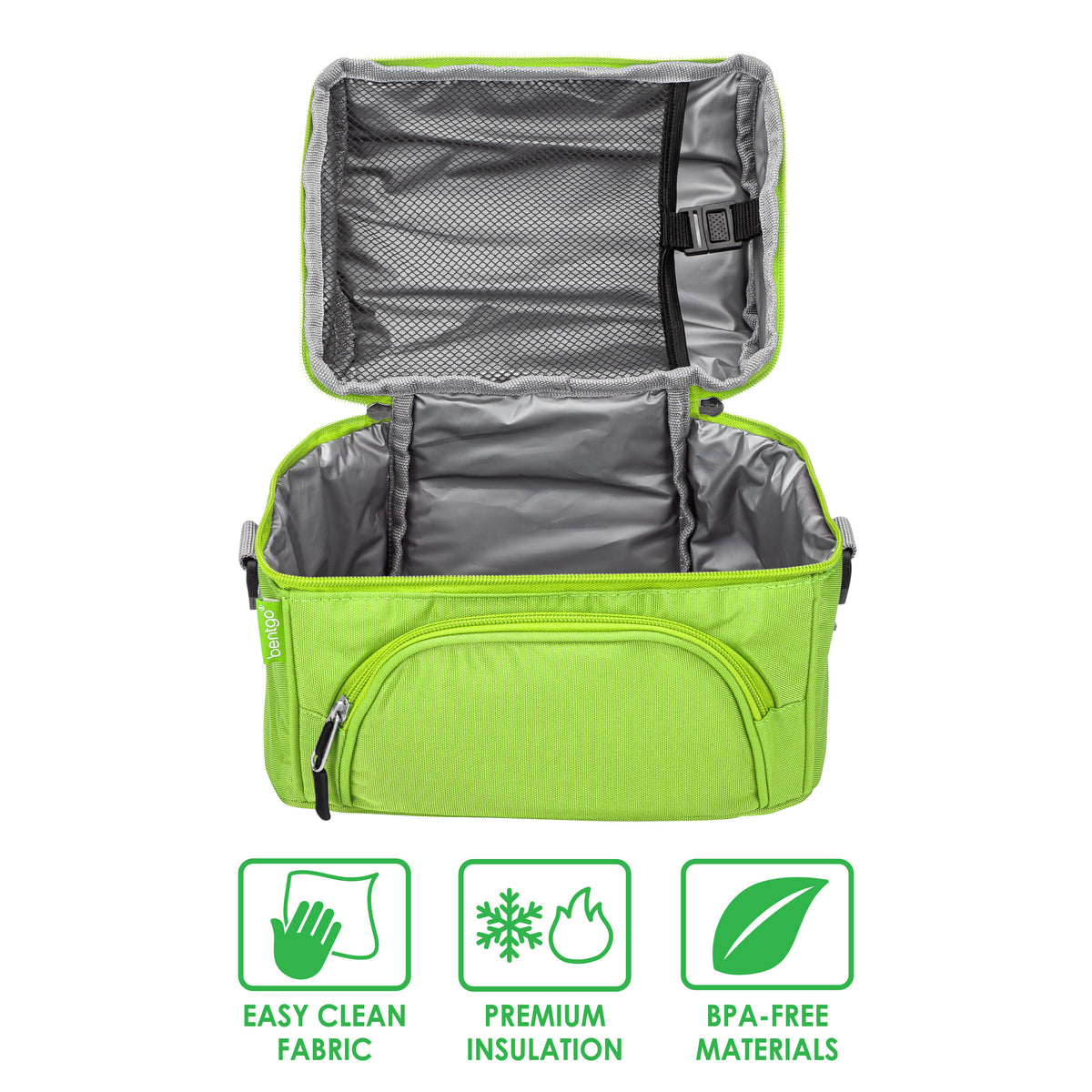 Bentgo Deluxe Lunch Bag makes carrying your lunch easy and colorful. This lightweight and durable insulated lunch bag comes in a variety of colors, giving kids, teens, and adults a stylish option for keeping food warm or cool for up to 4 hours. This roomy lunch bag fits most Bentgo lunch boxes and features an external pocket for napkins or utensils and an internal mesh pocket for an ice pack. Adjustable Straps: Carrying our lunch bag is easy, with a padded ergonomic handle or the adjustable shoulder strap Safe and Durable Materials: High-quality, non-toxic nylon EVA polyester not only looks great, but lasts long as well Easy to Clean: Simply use a damp cloth to wipe away dirt from use.