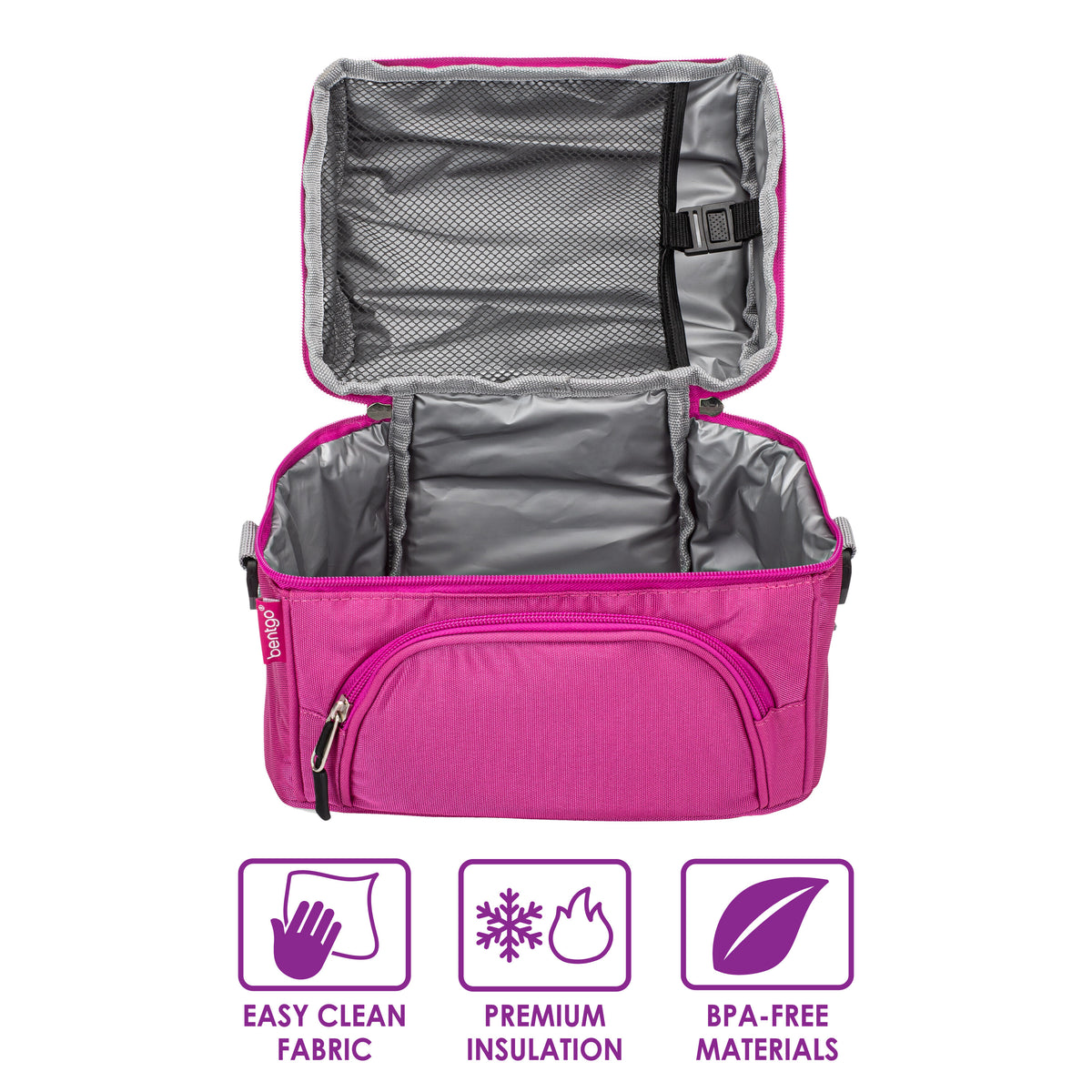 Bentgo Deluxe Lunch Bag makes carrying your lunch easy and colorful. This lightweight and durable insulated lunch bag comes in a variety of colors, giving kids, teens, and adults a stylish option for keeping food warm or cool for up to 4 hours. This roomy lunch bag fits most Bentgo lunch boxes and features an external pocket for napkins or utensils and an internal mesh pocket for an ice pack. Adjustable Straps: Carrying our lunch bag is easy, with a padded ergonomic handle or the adjustable shoulder strap Safe and Durable Materials: High-quality, non-toxic nylon EVA polyester not only looks great, but lasts long as well Easy to Clean: Simply use a damp cloth to wipe away dirt from use.