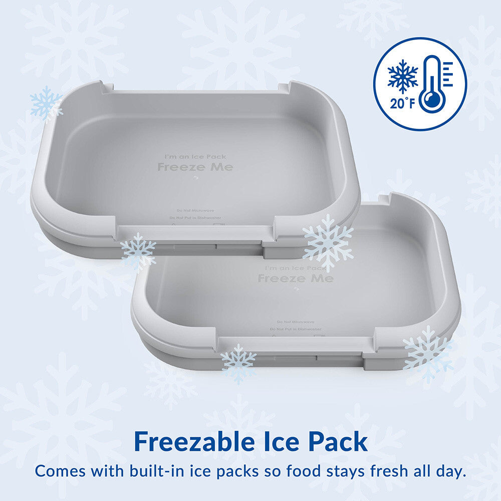 - When it’s time to go, add the frozen ice pack to the outer box, nesting it below the food tray.
